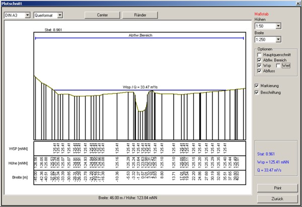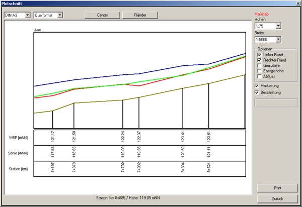 ![]() Bsp. Querprofilinformationen ![]() Bsp. Längsschnitt 1dimensionaler Berechnungen