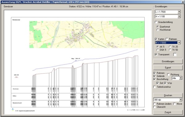 Vermessungsergebnisse, Wasserstände, Querprofile oder Längsschnitte